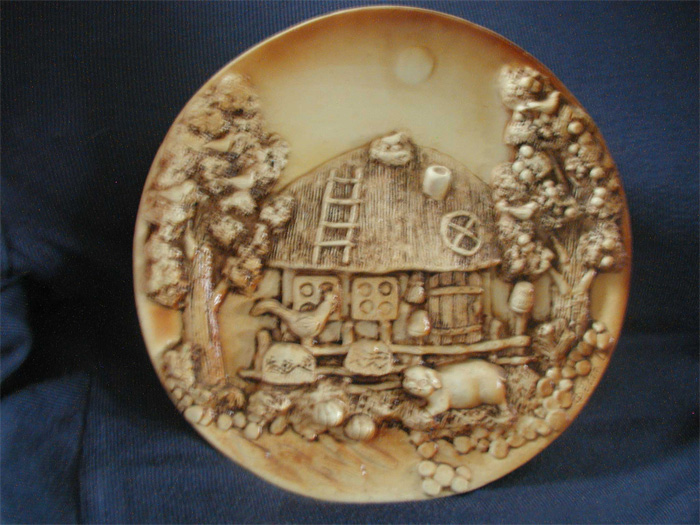 Decorative Plate Vintage decorative plate with Ukrainian peasant homestead. Clay, nice hand-made work 1950 years. |