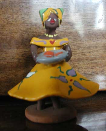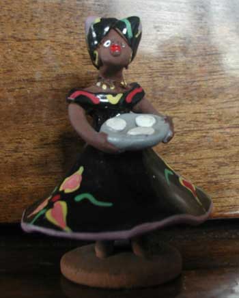 Clay figure Colorful clay figure, " woman with food". This funny handmake craft from Brazilia. Size 6 cm. |