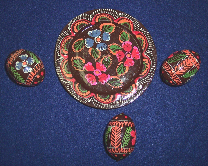 Plate and Eggs Set Wooden set of plate with three Easter's eggs. Juniper wood measures 3.5 inches. excellent craftsmanship!! |